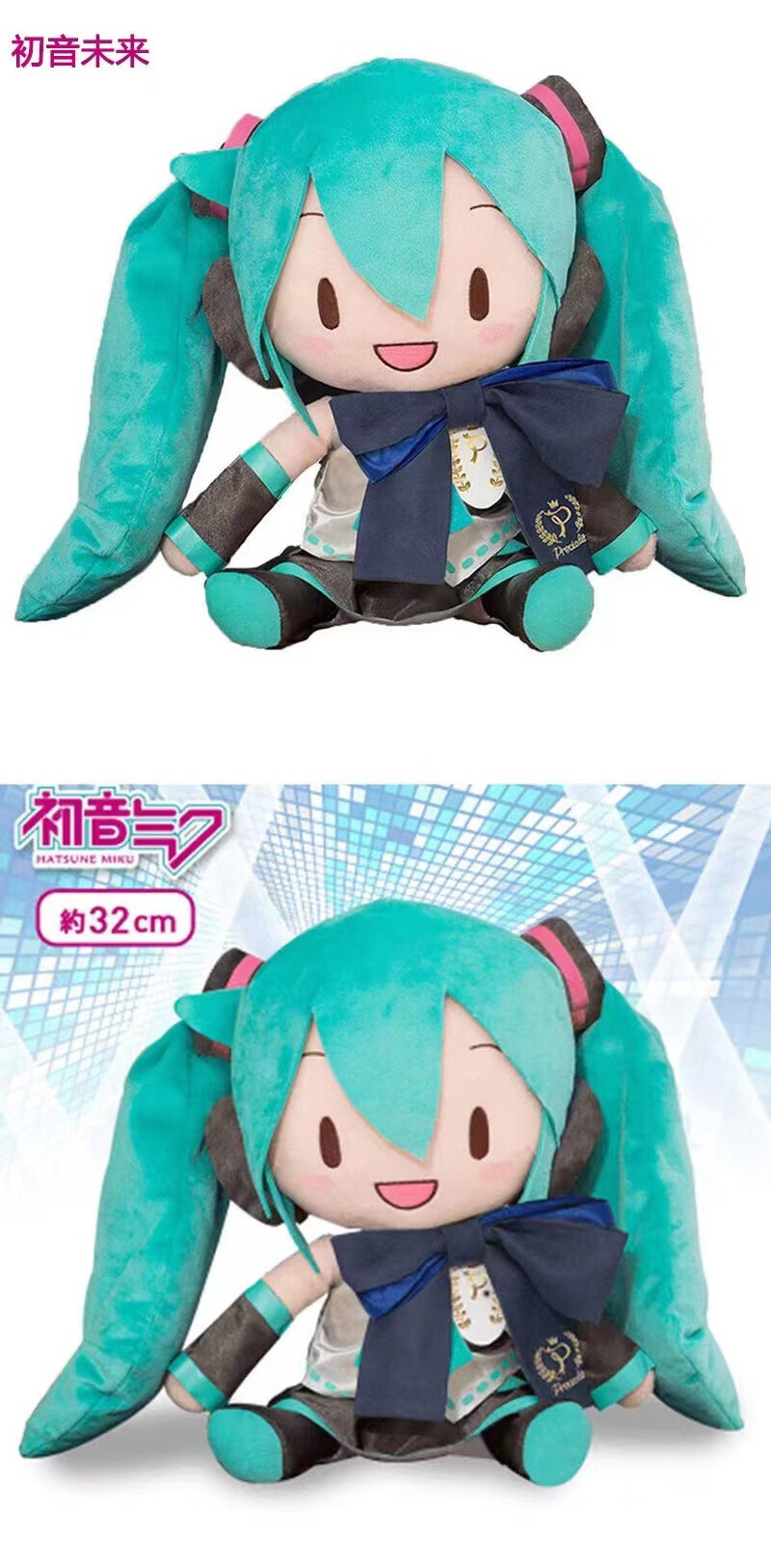 初音未来fufu玩偶MIKU周边抱枕雪未来樱粉毛绒公仔儿童生日礼物女 32cm 绿色初音【带蝴蝶结】 现货