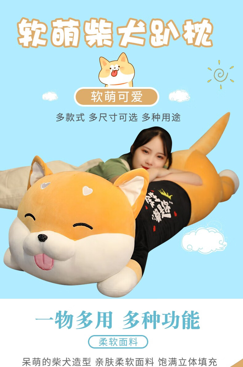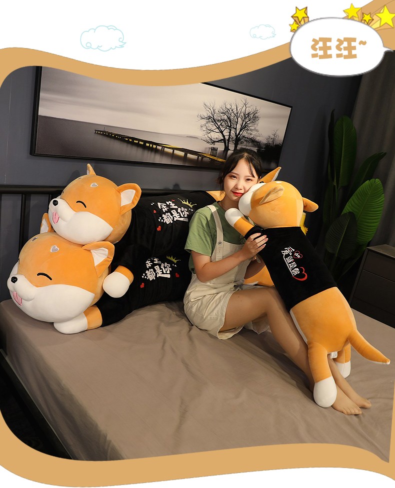 商品名称:柴犬抱枕毛绒玩具狗柴犬公仔大号狗狗布娃娃玩偶长条枕女孩床上睡觉抱送女生生日情人节圣诞礼物 眯眼柴犬(余生都是你) 1.2米(送20厘米铃铛小哈)