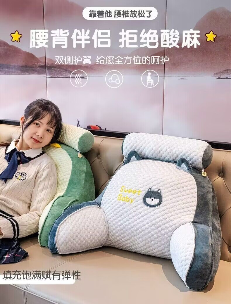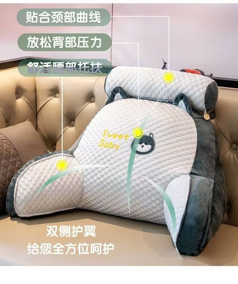 商品名称:邂逅的青春冰豆豆床头软包大靠背沙发靠垫枕头床上看书床靠护腰垫靠枕抱枕夏 么么哈士奇款 大号70*50cm【可拆洗】